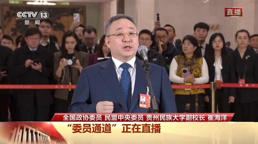3月11日上午,全国政协十四届四次会议第三场“委员通道”在人民大会堂举行,全国政协委员、民盟中央委员、贵州民族大学副校长崔海洋接受了记者采访。